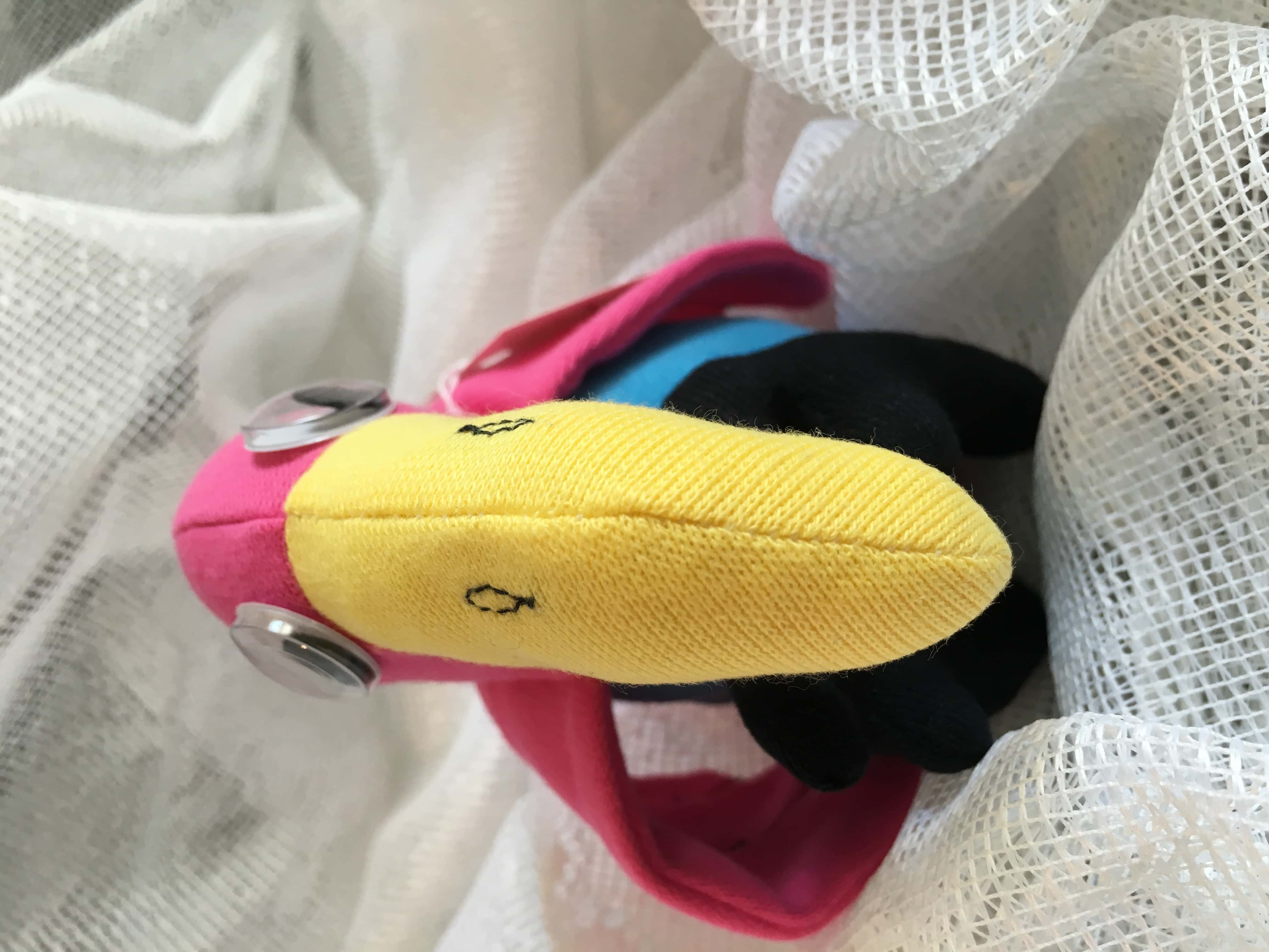 Maskota je narejena iz jerseya, ki je proti pršici. Polnjen je z PVC termofilom. Izdelek je pralen in prijazen otrokom ter alergikom. Visok je cca 12cm.